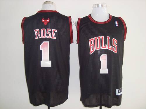 Jerseys Factory Cheap Bulls #1 Derrick Rose Black Fashion Embroi
