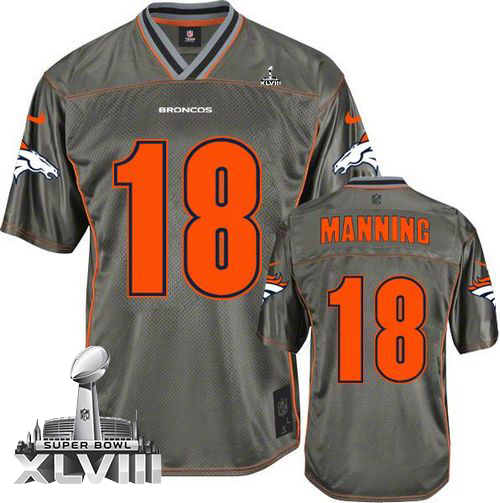 Jerseys Factory Cheap Nike Broncos #18 Peyton Manning Grey Super