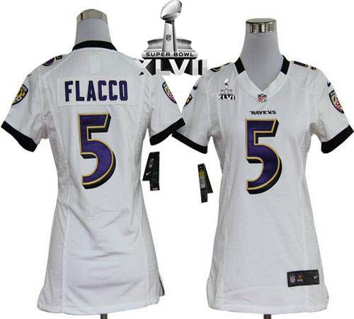 Jerseys Factory Cheap Nike Ravens #5 Joe Flacco White Super Bowl
