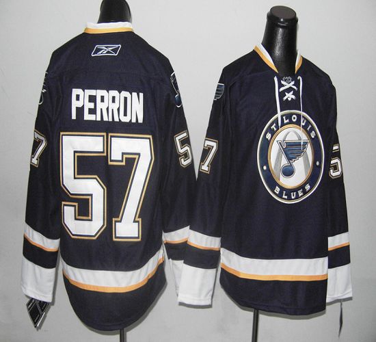 Jerseys Factory Cheap Blues #57 Perron Dark Blue Embroidered NHL