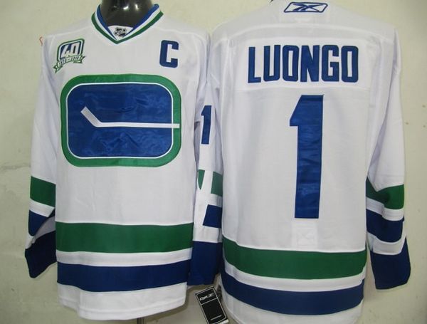 Jerseys Factory Cheap Canucks #1 Roberto Luongo Embroidered Whit