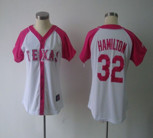 Jerseys Factory Cheap Rangers #32 Josh Hamilton White/Pink Women