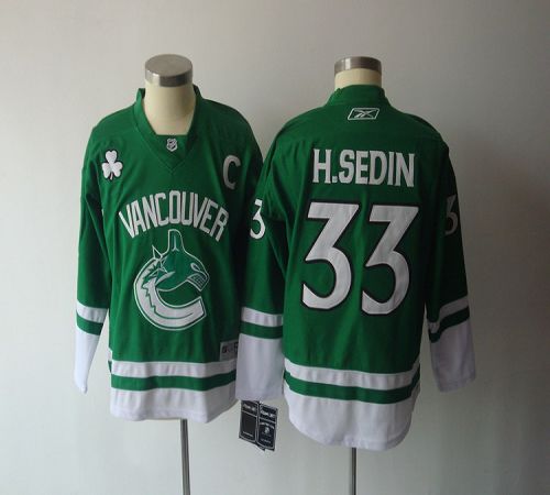 Jerseys Factory Cheap Canucks #33 Henrik Sedin Green St. Patty's